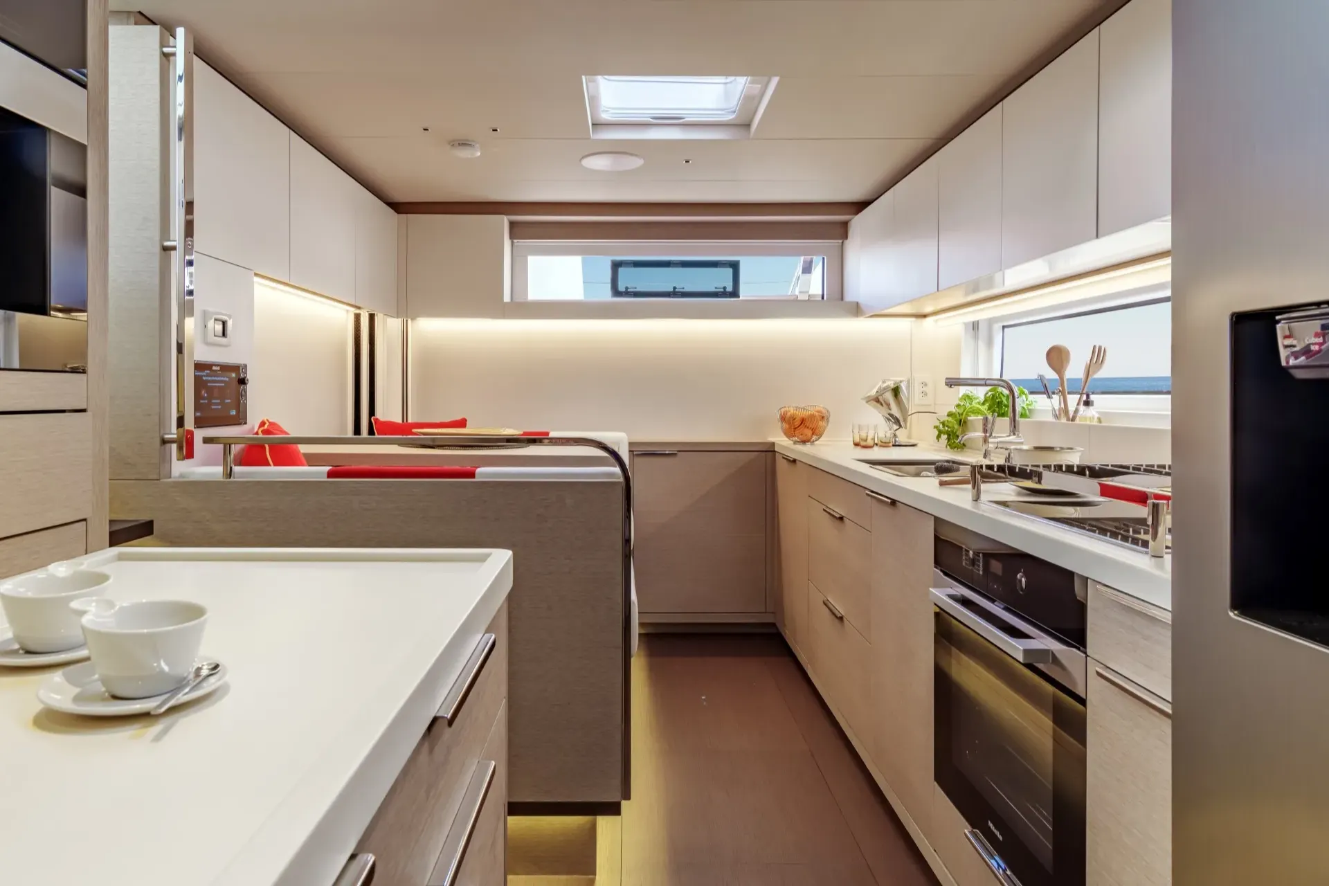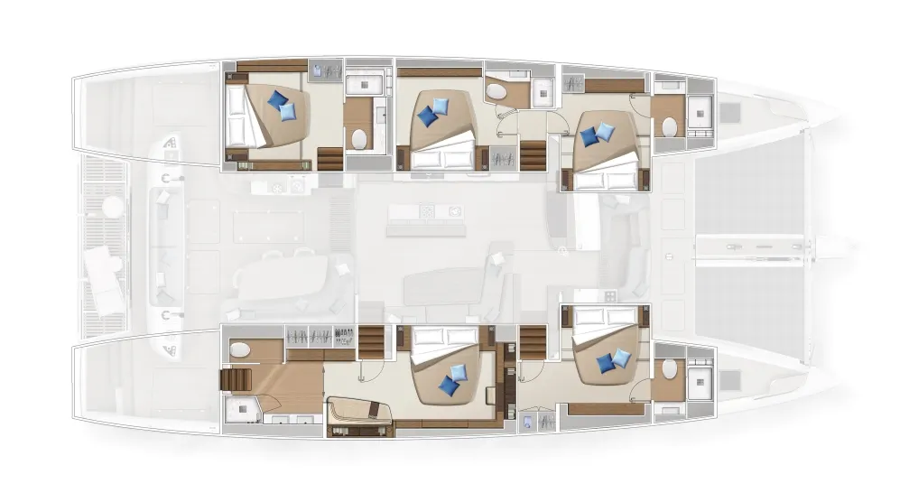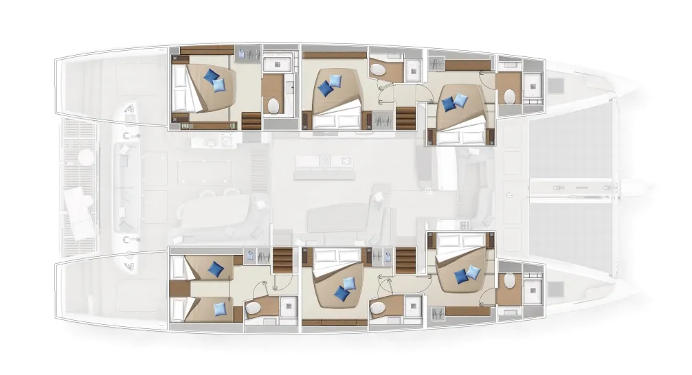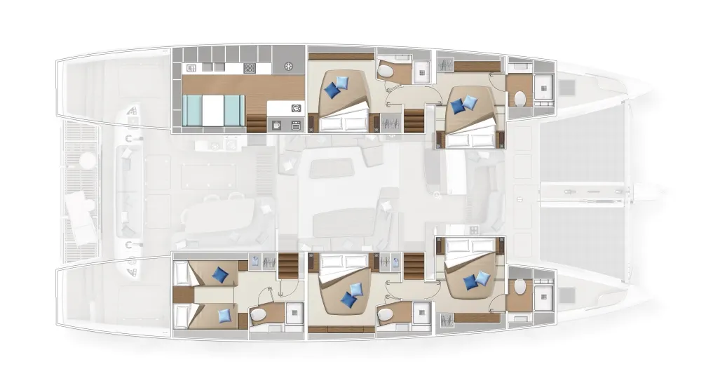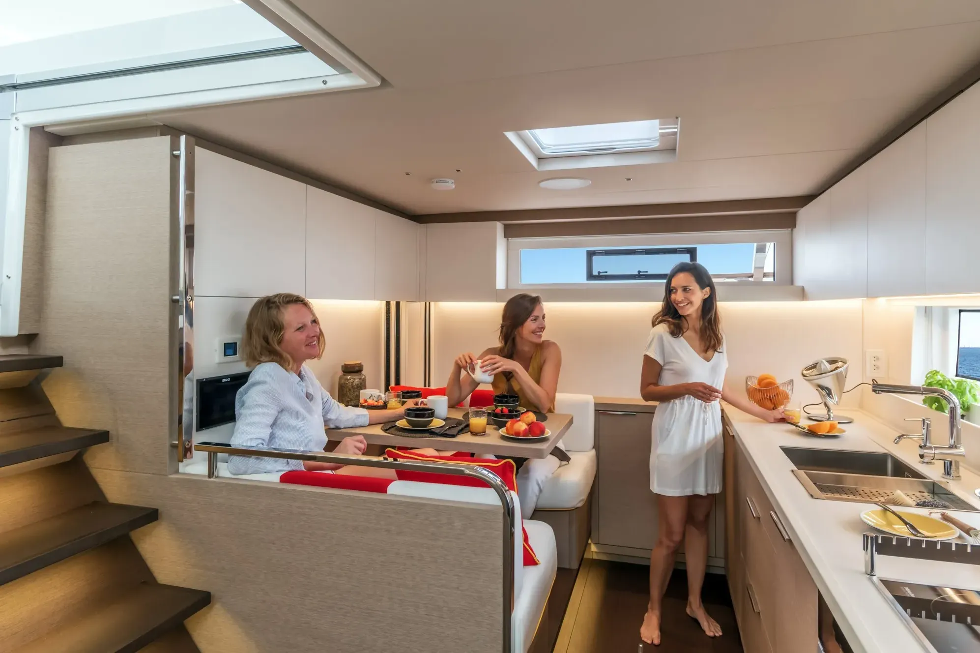 The new lounge area offers additional sun pads and a secure, redesigned access to the sea, complete with a forward swim ladder for the perfect anchoring experiences ahead. Our team of experts at Lagoon will accompany you throughout the life of your project, from defining your Lagoon to seeking the personalized solutions to make your yacht unique. In customizing your future yacht, creating hull color simulations, working on interior layouts, woodwork, or upholstery, our dedicated team places renowned savoir-faire and entirely personalized service at your disposal.