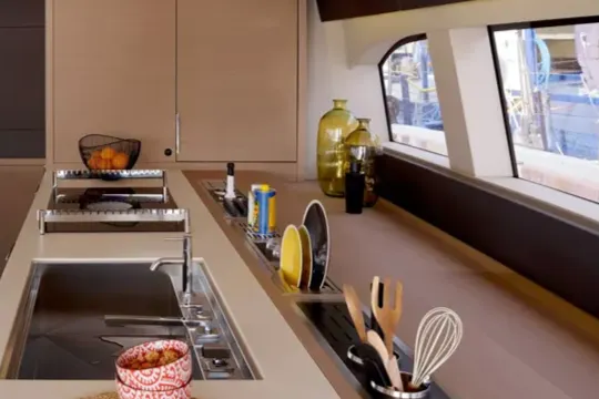 선상에서, 이 요트의 목공예와 내장재는 우아하고 세련된 마감재를 특징으로 합니다. SIXTY 5는 여행의 추억, 시간이 멈춘 듯한 순간들을 만들어 내도록 당신을 초대합니다.