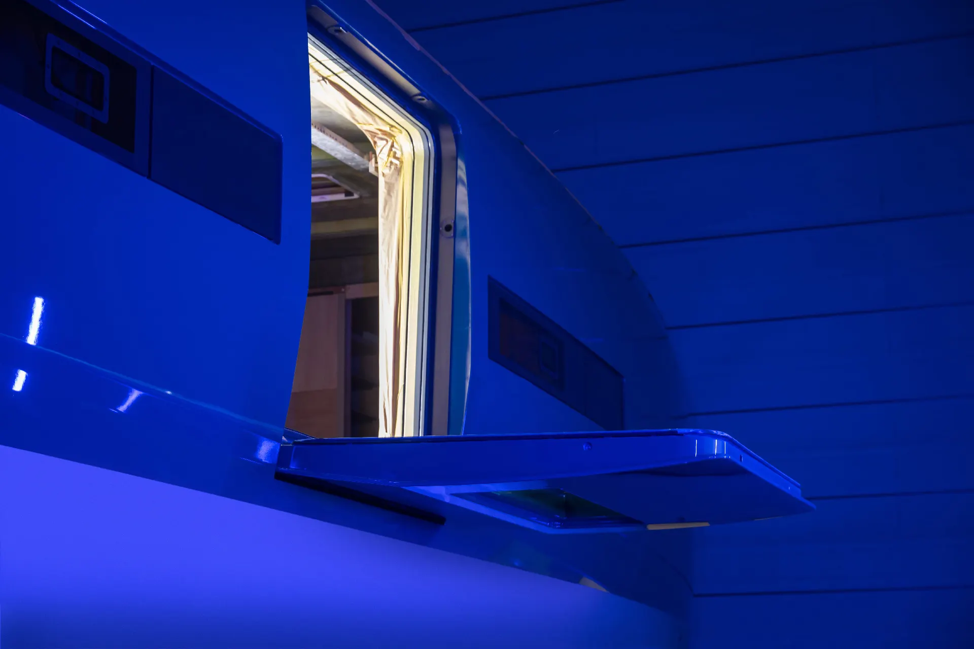 승선하여 탁 트인 전망을 즐겨보세요. 50m² 이상의 플라이브릿지는 수평선의 숨막히는 전경을 선사합니다. 두 개의 조타실과 태양광 패널을 갖춘 플라이브릿지는 개인적인 표현의 공간이기도 합니다. 당신의 스타일을 반영하는 공간을 만들 수 있도록 가구를 배치할 수 있습니다.