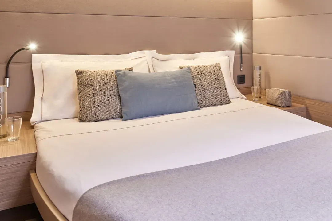 동일한 크기와 특징을 갖춘 여섯 개의 객실을 자랑하는 카타마란을 선택하세요. 이 카타마란은 전세 사용과 다양한 활동에 완벽하게 설계되었습니다. 최적의 편안함 속에서 최대 12명까지 승선할 수 있습니다.