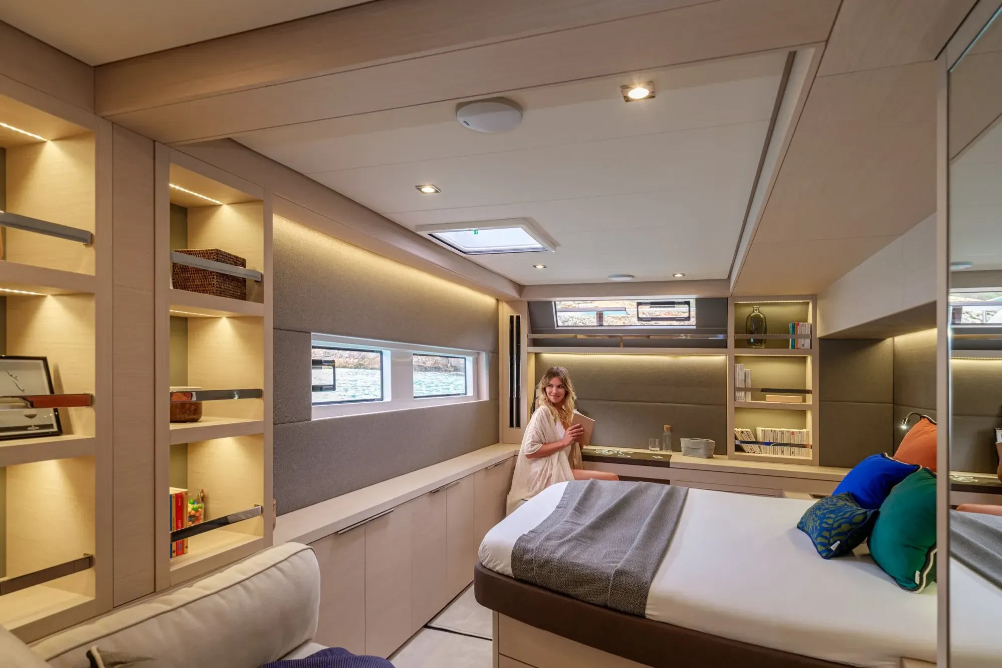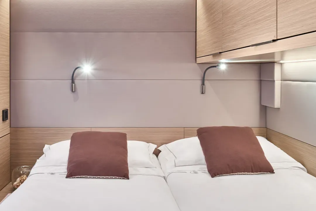 라군 55에 탑승하면, 일상의 제약에서 벗어난 달콤한 삶이 펼쳐집니다. 탈출하고, 긴장을 풀고, 시간이 멈춘 듯한 순간을 음미할 수 있도록 넓은 실내 공간이 설계되었습니다. 이 안식처는 완벽한 편안함과 프라이버시로 여러분을 맞이합니다.