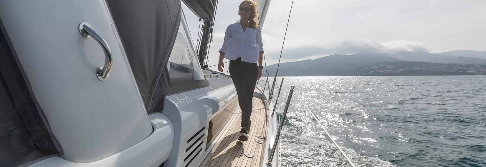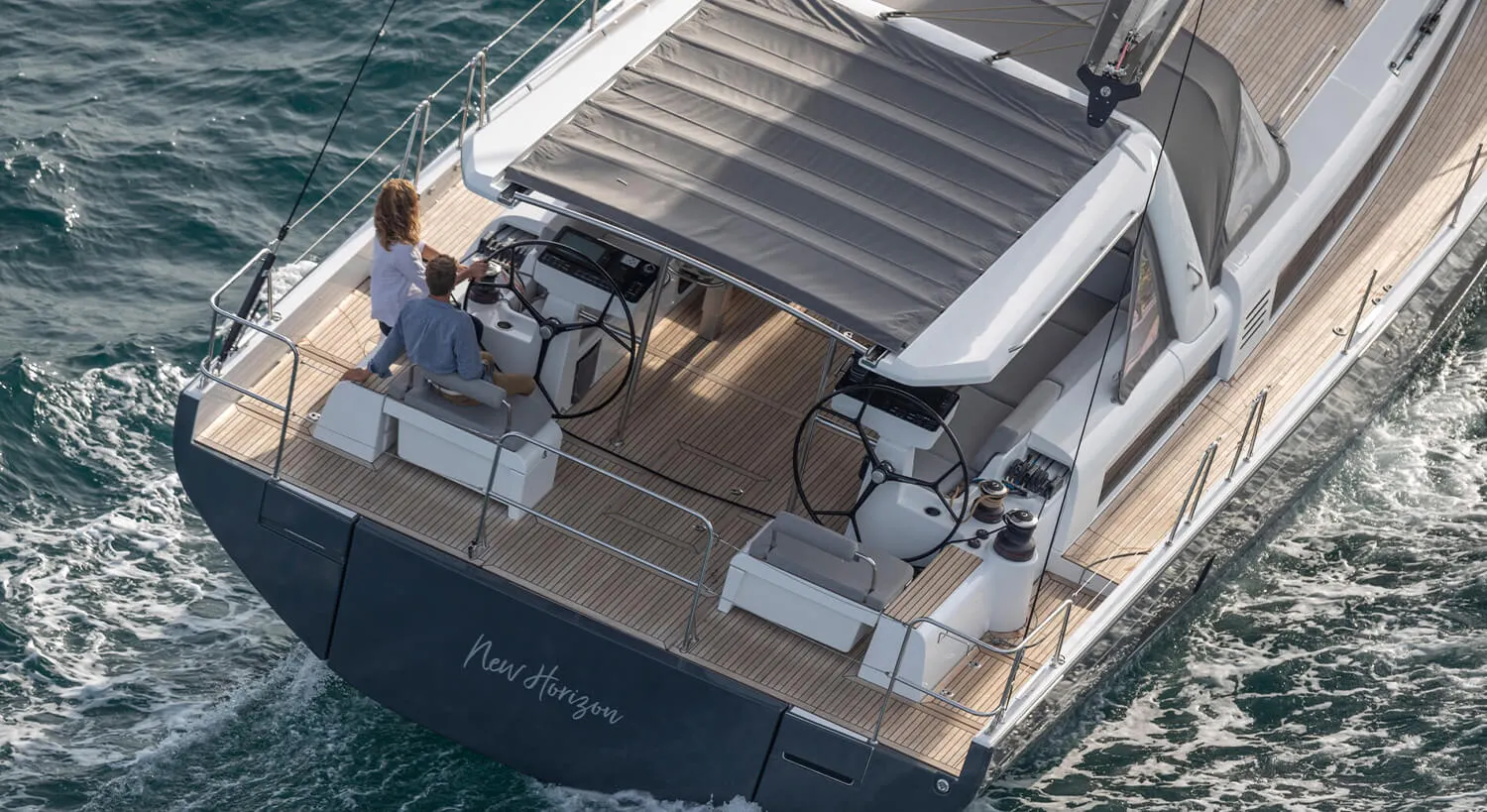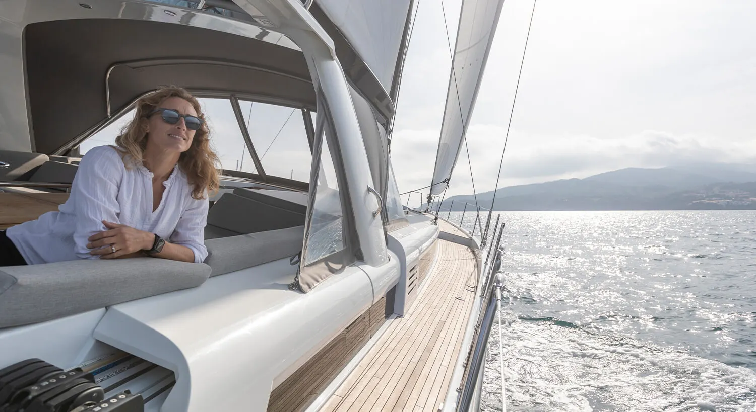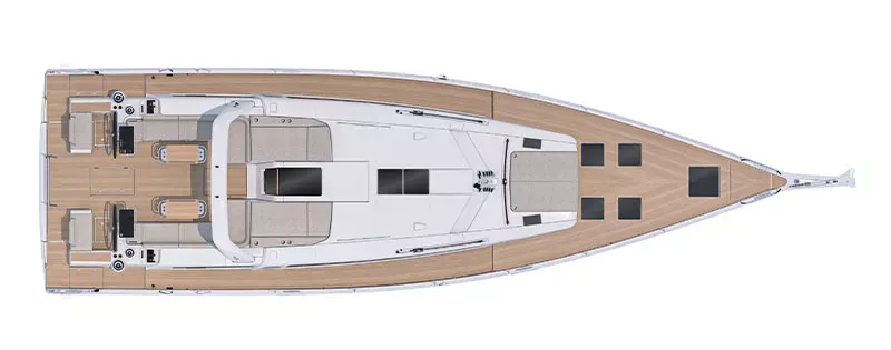 The new cockpit layout provides a sense of ease and security: access to the foredeck is at the same level via deep side decks.