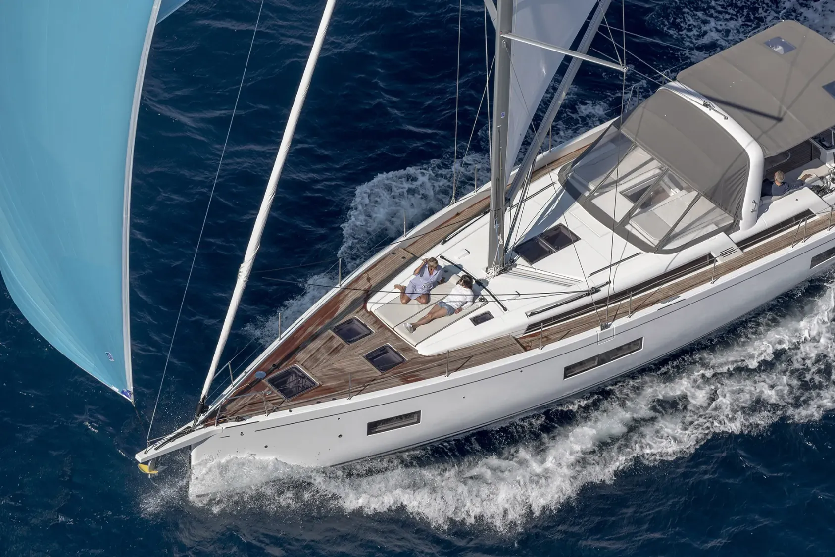 With a straight stem allowing for new interior volumes in the bow area, and a maximum beam (5 m) carried further aft, the Oceanis Yacht 54 offers a state-of-the-art, perfectly balanced hull that maximizes thrills in all conditions.