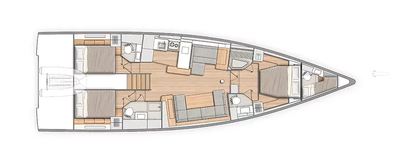 Oceanis Yacht 54의 레이아웃은 비교할 수 없는 수준의 편안함과 넉넉한 수납 공간을 제공하는 잘 설계되고 다용도로 활용 가능한 캐빈 배치를 통해 현대 오너들의 요구를 충족하고자 하는 열망을 반영합니다. 테이블과 좌석 공간은 사교성과 실용성을 모두 제공하도록 재구성되었으며, 모든 주요 시스템과 부품에 대한 접근은 눈에 잘 띄지 않게 숨겨져 있습니다.